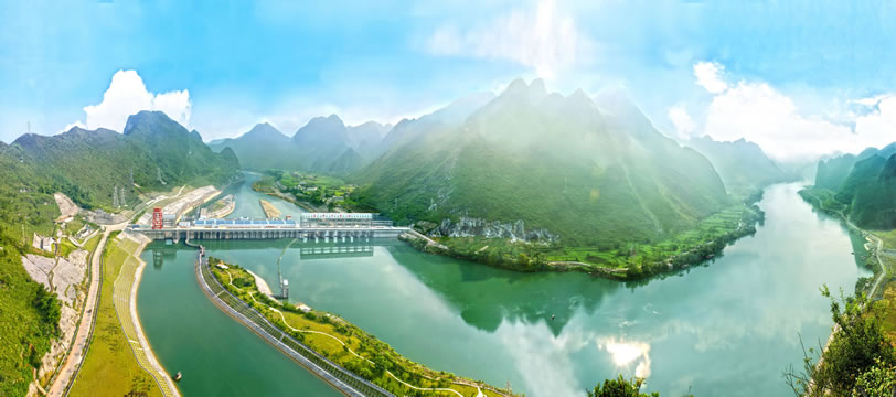 樂灘(惡灘)水電站庫區(qū)的紅水河源出于云南省沾益縣的南盤江,經(jīng)貴州流入廣西,是廣西以壯族為主體的少數(shù)民族的母親河、太陽河。紅水河是中國(guó)少有的水電資源。正在擴(kuò)建中的樂灘(惡灘)水電站預(yù)算投資39.7億元,裝機(jī)容量為60萬千瓦,年均發(fā)電量為35億千瓦時(shí),是紅水河上的十個(gè)梯級(jí)水電站之一。