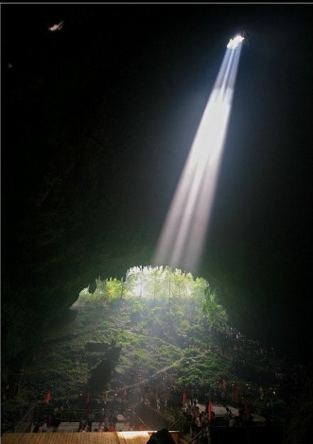 穿洞天坑地處樂業(yè)縣刷把村竹林壩屯,距縣城18公里。整個天坑呈多邊形,由六座山峰圍著,是所有天坑中峰體最多的天坑,屬世界六大超大型天坑之一。在所開發(fā)的天坑中,惟有該天坑可通過溶洞走入坑底,一覽坑底之神心,穿洞天坑的存在增加了天坑旅游的神秘,新奇價值。特別是坑底西南端的廳堂式洞穴,其頂部發(fā)育有一個小口天窗,光柱自108米高處射下,令人感到洞廳的寬大與空曠,球形洞室及天窗的存在,增加了自然景觀的神秘感。該景點是集溶洞、地下河、光柱、原始林林于一體的“天坑”縮影。