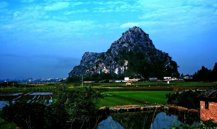 在靈山縣三海鎮(zhèn)梓崇村馬鞍山,山為喀斯特孤峰,形似馬鞍,山下有東勝巖、葡地巖和盡頭巖三洞。 1960年,廣東師院、廣東省文物管理委員會(huì)考古隊(duì)和中國科學(xué)院古脊椎與古人類研究所賈蘭坡、顧玉珉、顧閻等在東勝巖發(fā)現(xiàn)1塊顳骨的鼓室部、兩顆牙齒和一段左側(cè)股骨上段,在葡地巖發(fā)現(xiàn)1塊頂骨和3塊額骨,東勝巖還出土熊的化石和鈣化蝸牛,葡地巖出土中國犀牛、野豬、鹿和;,專家研究鑒定為更新世末期的人骨化石,命名為靈山人化石出土地點(diǎn),此外,還在石背山洪窟洞古人類遺址,出土1塊頂骨、1塊髖骨、1枚上臼齒、2枚板齒,代表老年個(gè)體、屬舊石器時(shí)代,在石塘鄉(xiāng)鐘秀山滑巖洞遺址,發(fā)現(xiàn)10塊頭骨、70枚牙齒、1塊髖骨、1件穿孔石珠和一些網(wǎng)紋、繩紋陶片,研究鑒定為新石器時(shí)代的人骨。 1962年2月廣東省靈山縣綠水公社綠水村社員在一處山坡上挖出了一件銅鼓,廣東省文物管理委員會(huì)得知后,派員至現(xiàn)場作了調(diào)查,并將銅鼓運(yùn)回廣州,發(fā)現(xiàn)銅鼓的山崗很高,約二百余米,銅鼓就埋在半山坡距地面約三四十米的地方,在山崗周圍沒有發(fā)現(xiàn)什么古代文化遺址或墓葬,附近也沒有找到什么共存遺物,只在銅鼓內(nèi)殘存的泥土中找到了一枚唐代的開元通寶,說明這只銅鼓是在唐代或以后才被埋入土中,銅鼓很大,面徑81、通高47厘米,除足部稍。