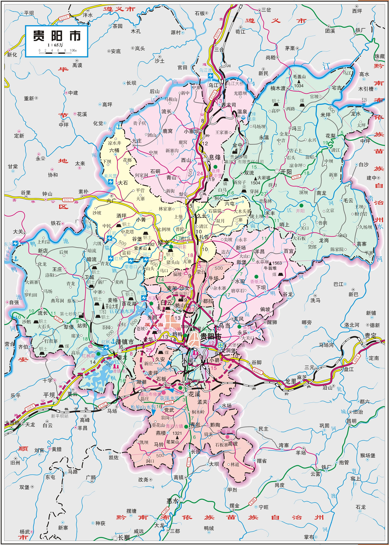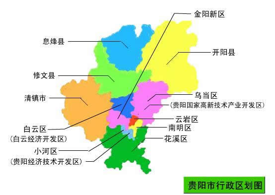 貴陽市轄6個(gè)區(qū)、3個(gè)縣、代管1個(gè)縣級市: