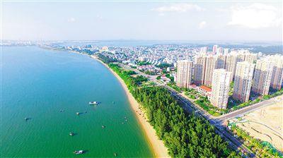 中國海南海花島位于排浦港與洋浦港之間的海灣區(qū)域,南起排浦鎮(zhèn),北至白馬井鎮(zhèn),距離海岸大于600米,總跨度約6.8千米。由三個獨立的離岸式島嶼組成,規(guī)劃填海面積約8平方千米,規(guī)劃平面形態(tài)為盛開在海中的三朵花,故人工島取名為“海花島”。