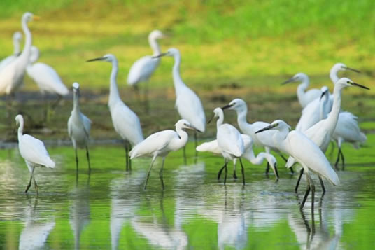 鷺鷥天堂位于海南省屋基村。村中三、四層樓高的三棵大榕樹和茂林修竹,成為萬只白鷺生活的"天堂"。白鷺又稱鷺鷥,屬鳥綱鶴形目鷺科,是世界上受保護的珍禽之一。白鷺群棲于屋基村已有多年。每年臨近清明成群結(jié)隊飛來,12月以后分批離去,在此生活八、九個月之久。為便于觀鳥,村中修建了高達6層的觀鳥樓。