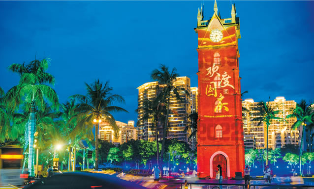 鐘樓為海口市的地標建筑之一,位于長堤路長堤灘公園(海口兒童公園),占地16平方米,建于民國十八年(1929年),屬于混合結(jié)構(gòu),高5層,墻體用紅磚砌成,白石灰勾縫,頂端周圍共筑8支箭尖角。大鐘設(shè)置在五樓,四面安裝七塊厚二厘米的大理石,構(gòu)成直徑兩米的鐘面,鐘時刻在大理石上,并嵌上鉛牌,涂以黑色。具有歐洲哥特式建筑風(fēng)格,景致幽雅。原址在本區(qū)中山橫路,后因城市擴建遷于此地按原貌重建。