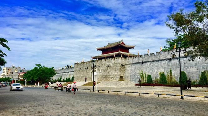 崖州古城(墻) 明至清代,位于崖州區(qū)內(nèi)。據(jù)《崖州志》(郭沫若校訂本)記載:崖州古城始建于宋,原系土城,南宋慶元四年(1198年)砌磚,紹定六年(1233年)開東、西、南三門,明洪武十八年(1385 年)擴建城址,復加磚砌,城門上建敵樓,外挖護城壕,明正統(tǒng)元年(1436年)立吊橋,清道光二十一年(1843年)改南門為“文明門”。1966年前后部分城墻被毀,F(xiàn)存城墻南門“文明門”和距“文明門”西面800米處的敵樓城墻,城磚側(cè)面有“官”與“吉”字印款。西北角的護城河保存較為完整,有磚砌拱橋一座。