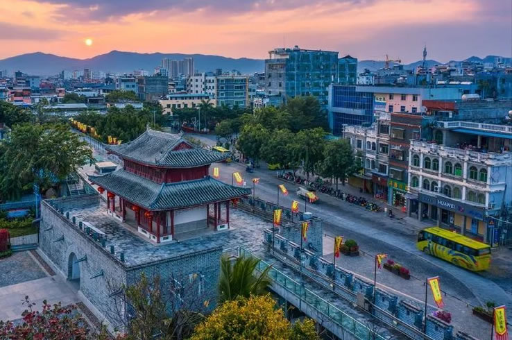 崖州古城,即現(xiàn)海南省三亞市崖城鎮(zhèn),位于三亞市西40多公里處,自南北朝起建制崖州,宋朝以來歷代的州、郡、縣治均設(shè)在這里。今天的崖城,以其悠久的歷史和繁多的名勝古跡而成為海南旅游勝地。 海南建省辦大特區(qū)后,崖州城的城門已修繕一新,顯得雄偉壯觀,中外游客川流不息。在崖城還有聞名海內(nèi)外的風景區(qū)大小洞天,其形如巨鰲,枕海壁立,峰巒竟秀,林木重疊,山奇石怪,千姿百態(tài),綠榕垂蔭,紅豆如星,泉清似醴。
