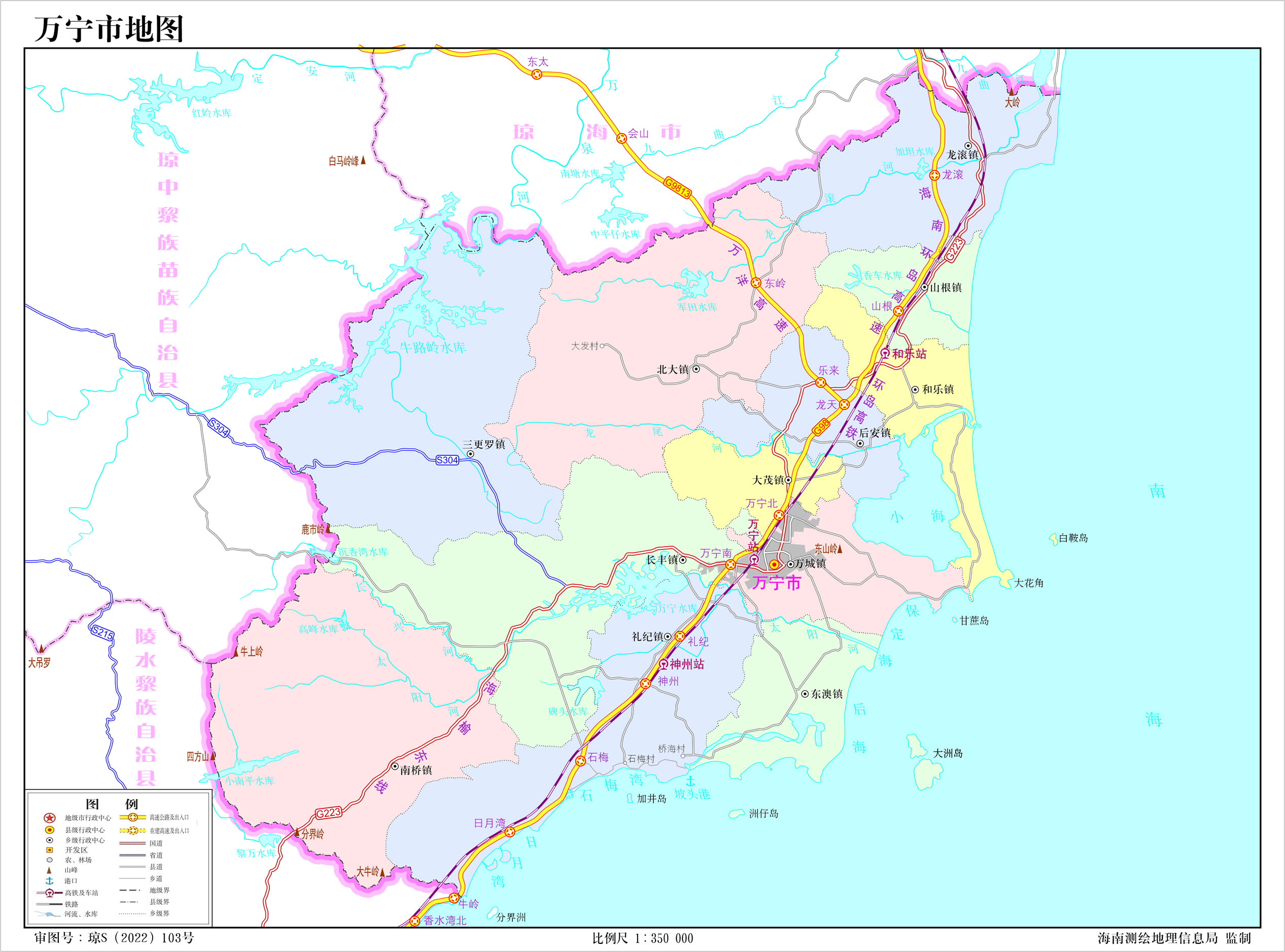 1996年8月5日,撤萬寧縣,設(shè)萬寧市,以原萬寧縣的行政區(qū)域為萬寧市的行政區(qū)域。