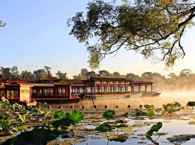 清康熙二十年(1681年),清政府為加強對蒙古地方的管理,鞏固北部邊防,在距北京350多公里的蒙古草原建立了木蘭圍場。每年秋季,皇帝帶領(lǐng)王公大臣、八旗軍隊、乃至后宮妃嬪、皇族子孫等數(shù)萬人前往木蘭圍場行圍狩獵,以達到訓(xùn)練軍隊、固邊守防之目的。為了解決皇帝沿途的吃、住,在北京至木蘭圍場之間,相繼修建21座行宮,熱河行宮——避暑山莊就是其中之一。避暑山莊及周圍寺廟自康熙四十二年(1703年)動工興建,至乾隆五十七年(公元1792年)最后一項工程竣工,經(jīng)歷了康熙、雍正、乾隆三代帝王,歷時89年。在英法聯(lián)軍攻打北京時,咸豐皇帝就帶著一批大臣逃到了這里。