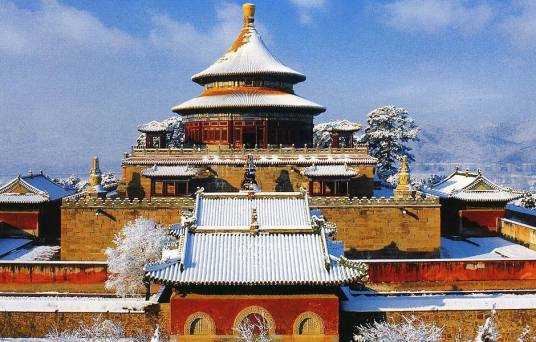 避暑山莊周圍的喇嘛教寺廟群是依照西藏、新疆喇嘛教寺廟的形式修建的,以供邊疆少數(shù)民族的貴族朝覲皇帝時禮佛之用。共12座,其中的8座由清政府直接管理,故被稱為“外八廟” 。廟宇按照建筑風格分為藏式、漢式和漢藏結(jié)合式三種,它們?nèi)诤狭藵h、藏等民族建筑藝的精華,氣勢宏偉,極具皇家風范。這些風格各異的寺廟是當時清政府利用宗教作為籠絡手段來團結(jié)蒙古、新疆、西藏等地區(qū)少數(shù)民族而修建的。它們多利用向陽山坡層層修建,主要殿堂聳立突出、雄偉壯觀。