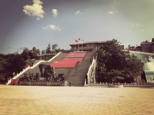 位于陳列館臺階正下方,占地1萬平方米。抗大在此辦學(xué)期間為學(xué)員操場和訓(xùn)練場,1941年5月,在這里隆重舉行了抗大五周年校慶活動。廣場與陳列館之間由30米寬的臺階相連接。