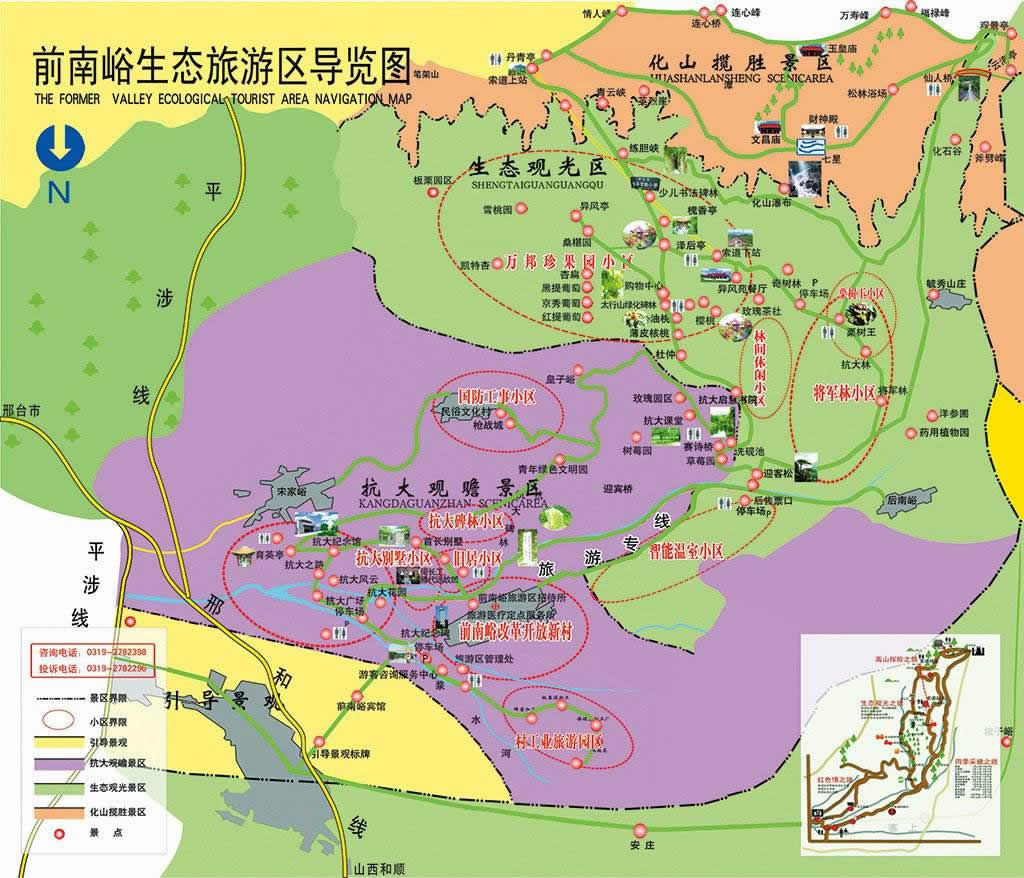 前南峪國家森林公園里有全國愛國主義教育示范基地——抗大陳列館、紀(jì)念碑和大型浮雕像;筆架山、練膽峽、斧劈峰、七星閣、文昌閣、澤后亭等景點(diǎn);萬邦珍果內(nèi)已有美國紅提葡萄、澳洲秋紅油桃和烏克蘭櫻桃等品種;萬株唐代板栗樹和西洋參、杜仲、丹參、金銀花等數(shù)十種保健藥用植物;還有14億年前的植物化石、古長城、志高厴、溫泉寺等古跡。