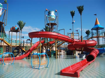 寶貝水城:小孩子的玩水樂(lè)園、歡樂(lè)的造夢(mèng)空間。典型設(shè)備包括蝴蝶滑梯、青龍滑梯、鱷魚(yú)滑梯等設(shè)備,還有蝸牛號(hào)、椰果派、水風(fēng)車、向陽(yáng)花、七彩蘑菇、彩虹門、三色花、鳥(niǎo)語(yǔ)花香、小妖精等可噴水可觀賞的童趣水景。寶貝水城色彩鮮艷,設(shè)施眾多,小孩們可以盡情嬉戲玩耍,激發(fā)兒童無(wú)窮的想象力和創(chuàng)造力。
