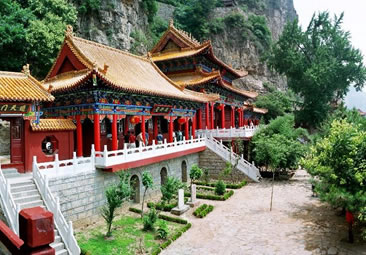 天桂山的青龍觀,原是為明朝末代崇禎皇帝修建的歸隱行宮。明朝末年,李自成起義嚴重動搖了明廷皇權。崇禎皇帝朱由儉在義軍紛起逼近北京的情況下,預感江山不穩(wěn),便密派心腹太監(jiān)林重萆出京選隱地修建行宮,以防不測。故所有的建筑既有皇宮之名,又有道教之稱,是中國唯一政教合一的古建筑群。清初一百年間,青龍觀屢有增設和修葺,擁有大小建筑十二處之多。其中真武殿、蒼巖殿和大光明殿共為青龍觀的三大建筑。在這座集皇家園林、道教宮觀和大自然秀麗景觀于一體的風景名勝區(qū)內,青龍觀的龐大建筑群,依山就勢,隨崖而建,真可謂陡崖鑲金,絕壁嵌珠,巧奪天工。天桂山既有雄秀交融的天然風光,又有皇家園林的高貴氣韻和道家仙山的莊嚴氣勢及神秘色彩,俗有“皇家道院”之稱,“北方桂林”之譽