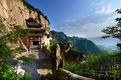 繞山登上十八盤,便到達(dá)最高處的媧皇閣。媧皇宮的建筑布局,充分利用了原有地形,依山就勢,匠心獨(dú)運(yùn)。