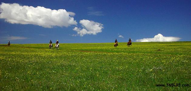 為不存在過(guò)度放牧問(wèn)題,再加上雨量充沛,這里的草顯得更為原始。與草打成一片的爛漫野花,也成了蜜蜂、蝴蝶爭(zhēng)相追逐的目標(biāo),紅色的山丹、白色的銀蓮、粉色的老鸛草以及其他幾十種叫不出名兒的花,從每年的5月至10月輪番上陣,讓空中草原又擁有“空中花園”的美譽(yù)。這里有兩種花最為惹人,一個(gè)是雪絨花,看似它的白色小花不夠艷麗,但它身份高貴,被瑞士、奧地利、芬蘭等國(guó)家奉為國(guó)花,對(duì)于這種珍稀花種,當(dāng)年馮驥才來(lái)到蔚縣空中草原后發(fā)現(xiàn)它竟在此大面積地安家落戶,欣喜地稱這里是“中國(guó)雪絨花的故鄉(xiāng)]”。另一種便是野罌粟,雖然名字不大惹人愛(ài),但它生命力強(qiáng),黃色花瓣格外鮮艷奪目,它們?nèi)缤艚鹣阋话沅佌乖诰G色原野中,場(chǎng)面煞是壯觀。