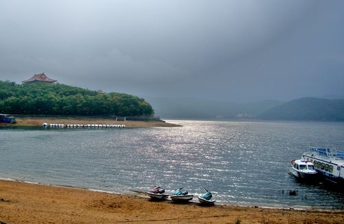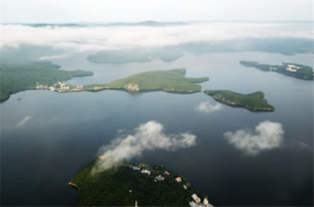 鏡泊湖水系包括大小約30多條河流,呈向心式匯入湖中。這些河流多屬山溪性質(zhì),水流湍急,徑流集散速度很大,具有含沙量小、年徑流量大、流量季節(jié)變化明顯、冰期較長等特點(diǎn)。鏡泊湖南北長45公里,東西最寬處6000米,最窄處300米,一般寬度在500~1000米之間,最深處70米(在鏡泊湖北部水域),水面積79.3平方公里,蓄水量約16億立方米。第二大湖泊小北湖長約6000米,水面積3.80平方公里。鏡泊湖水位年內(nèi)變化特征如下:最高水位多出現(xiàn)在八月至九月,最低水位多出現(xiàn)在三月至四月,多年平均水位為347.95米,最高水位為354.43米,最低水位為339.17米。鏡泊湖水源于牡丹江。牡丹江發(fā)源于吉林省長白山牡丹嶺,江水比降大,鏡泊湖距牡丹江源頭約300公里,落差達(dá)750米左右。