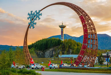 行車25公里后亞布力滑雪場(chǎng)山門,左右兩側(cè)會(huì)出現(xiàn)大小不一的很多私人雪場(chǎng),繼續(xù)開至最頂端到達(dá)中國最大的亞布力體育局滑雪場(chǎng)。