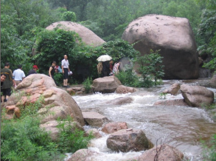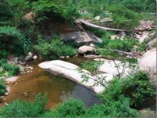 元寶潭元寶潭是畫眉谷景區(qū)的第一個景點。元寶潭是因潭中有一 個形似元寶的石頭而得名。此石是由斷裂破碎的花崗巖體經(jīng)長年水流下切侵蝕而成的。關于這元寶潭還有一個動人的傳說。傳說有盜寶者在山中盜得元寶外逃至此,被鎮(zhèn)山神指定住,寶落潭中。至今元寶仍在潭中,成為畫眉谷旅游的一道亮麗風景。