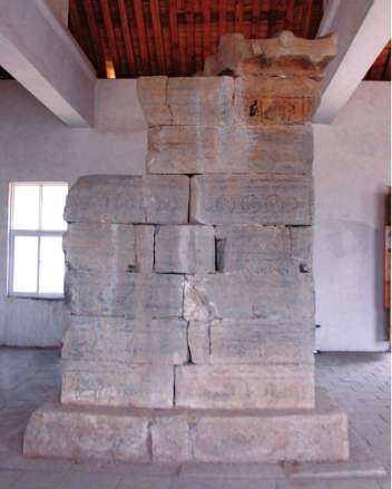 觀星臺(tái)南側(cè)的周公測景臺(tái)是古代祖先測量日影、驗(yàn)證時(shí)令季節(jié)的儀器。分臺(tái)座和臺(tái)柱兩部分,臺(tái)座叫圭,臺(tái)柱叫表。夏至日這一天的正午,在測景臺(tái)的周圍看不到表的影子,所以,稱此臺(tái)為無影臺(tái)。又因?yàn)闊o影,我們的祖先就認(rèn)為這里就是地中。