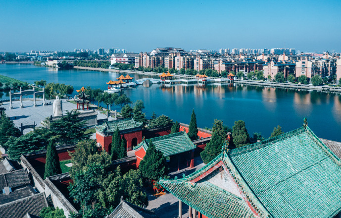 龍湖因伏羲氏定都宛丘,以龍紀(jì)官,號曰龍師而得名,水域面積近萬畝,是國家濕地公園、國家水利風(fēng)景區(qū),也是中國面積最大的內(nèi)陸環(huán)城湖,被譽(yù)為“中原明珠”、“內(nèi)陸奇觀”。