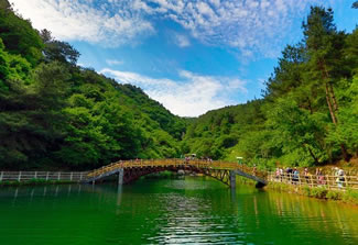 通天湖:原為天崗山發(fā)電站供水總庫(kù),水面110余畝,居高臨下,湖光山色,交相輝映。二期開(kāi)發(fā)新建的環(huán)湖棧道、彩虹橋依山傍水,幽靜迷人。湖中的通幽半島,樹(shù)高林密,鳥(niǎo)語(yǔ)花香,神奇而壯觀,非水路而莫登。