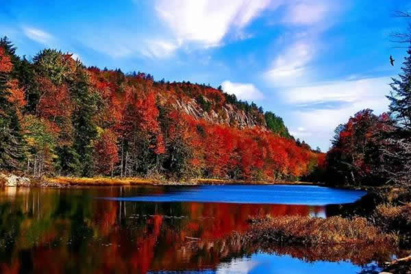 楓林灣:這是一片參天蔽日的楓樹(shù)林,春綠秋紅,給人寧?kù)o溫馨而又博大壯觀的感受。