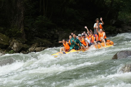 被譽(yù)為“中國生態(tài)第一漂”,位于東江湖最南端的黃草鎮(zhèn)境內(nèi),全程28千米。從龍王廟起漂點(diǎn)到燕子排終漂點(diǎn)整個落差75米,急灘108個,漂流河道兩巖有保存比較完好的原始次森林,奇巖怪石林立,古樹遮天蔽日,老藤攀崖附壁,飛鳥跳躍枝頭。東江漂流以其灘多浪急落差大、水碧石怪魚奇怪、兩岸森林植被佳而 聞名,是國內(nèi)目前最具探險(xiǎn)的融歷險(xiǎn)、探幽、獵奇、拾趣為一體的漂流去處。