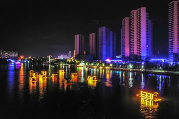 東江花月夜是東江湖旅游發(fā)展集團(tuán)有限公司在市委、市政府的堅(jiān)強(qiáng)領(lǐng)導(dǎo)和有力支持下,依托東江灣省級旅游度假區(qū)傾心打造的一款夜間文旅消費(fèi)產(chǎn)品。項(xiàng)目內(nèi)容主要有:夜間竹筏漂流、畫舫游、夜間演藝以及水上自行車、水上跑車、帆船、槳板、休閑皮筏艇等,涵蓋餐飲、茶道、清吧、娛樂、演藝等各個消費(fèi)鏈條。規(guī)劃綜合投資2億元通過2-3年努力,將項(xiàng)目打造成為省內(nèi)外知名的夜間文旅 IP。