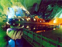 奇梁洞位于鳳凰古城以北的奇梁橋鄉(xiāng),吉鳳公路左側(cè),屬于典型的碳酸鹽巖洞。奇梁洞集山、河、峽谷、險灘、絕壁、飛瀑、叢林、田園、村落于一體,洞內(nèi)有“古戰(zhàn)場”“畫廊”“天堂”“龍宮”“陰陽河”五大景區(qū)。于是有“奇、秀、幽、峻”四大特色,更有“奇梁歸來不看洞”之說。洞口高50余米,寬20多米,一條清溪穿溶洞而過,水流平緩。巖洞用五光十色的霓虹燈打在石筍、石幔及石花上。洞長有十二余里路,走完全洞,得要三個多小時。奇梁洞不僅景色迷人,還有著獨特的歷史底蘊,后來還成為湖南衛(wèi)視《玫瑰之約》現(xiàn)場拍攝之地。