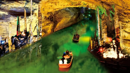 響水河是黃龍洞內(nèi)三條地下陰河中的一條,位于第二層。它全長(zhǎng)2800米,平均水深平6米,最深處有12米,目前乘船游覽其中的一段為800米,時(shí)間約8分鐘左右。響水河平均水溫常年在攝氏16度左右,盛產(chǎn)國(guó)家二級(jí)保護(hù)動(dòng)物娃娃魚和通體透明的“玻璃魚”。蕩舟響水河,沿途充滿神秘誘惑的風(fēng)景,如龍王金盔、海螺吹天等景點(diǎn)都值得您慢慢欣賞和品味?展扔腻,岸危穹高。忽仰忽傾,若明若暗,恍若回到混沌的遠(yuǎn)古時(shí)代。1992年聯(lián)合國(guó)世界自然遺產(chǎn)專家盧卡思考察響水河時(shí),稱贊道:“黃龍洞是我見到的最漂亮的溶洞,還有這么美的陰河,真是不可思議!”
