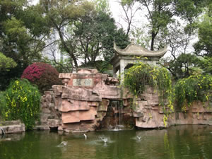 逸響亭位于景區(qū)杜鵑山下,為八方單檐琉璃構(gòu)筑。柱聯(lián)有“繞亭綠樹生新籟;隔葉黃鸝共好音!惫蕿楸姸鄻I(yè)余戲曲愛好者所雅集,擊板行腔,遙吟俯暢,逸興遄飛,其樂融融。