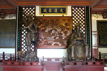 文昌帝君、魁星像陳列展示廳位于天心閣主閣一樓,正中央供奉著“文昌帝君、魁星神像”,是保長沙文運昌盛之舉。