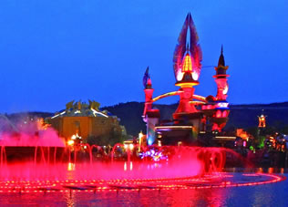 遮掩不住的綠意、隨風(fēng)起舞的樹影、奇思妙想的雕塑。每處景致都在極力烘托各區(qū)域的主題特色。漫步在嬉戲谷,收獲的不僅是自然的靈感、生活的情趣,更有讓人禁不住會(huì)心微笑的細(xì)節(jié)和不經(jīng)意間心靈的震撼。最美不勝收的樂園中心的“精靈湖”,湖中挺立著一座精致典雅、風(fēng)格獨(dú)特的“神秘之島”,湖島相連,脈脈依依,給人以無盡想象,續(xù)寫著不朽的浪漫傳奇,夜晚。彩色噴泉與夜色相交,體現(xiàn)出與自然景色不一樣的美-------科技美。