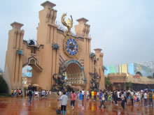 “迷獸天途”:這座龐大的平頂建筑也有石砌的不規(guī)則外墻,其內(nèi)部設(shè)計(jì)則緊扣樂園劍文化主題,充滿游戲魔幻色彩。集現(xiàn)場(chǎng)實(shí)景、立體電影、現(xiàn)場(chǎng)特技、動(dòng)感平臺(tái)等先進(jìn)技術(shù)于一體,綜合了巨幕、環(huán)幕4D電影、多自由度動(dòng)感游覽車、現(xiàn)場(chǎng)特技等多項(xiàng)高科技游樂技術(shù)。