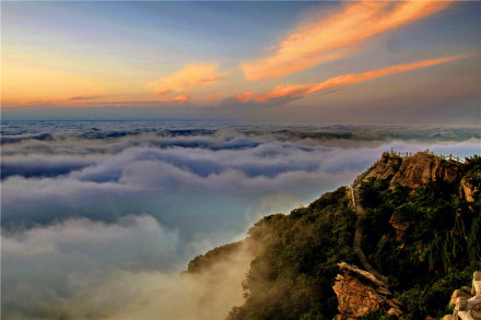 神奇的平流霧猶如仙境,十分壯觀,整個花果山在平流霧若隱若現(xiàn)宛如海市蜃樓,猶如仙境般迷人陽光下大片云海如飄蕩的棉絮,上下翻涌,山巒被浩渺的云海淹沒,汪洋一片,似海非海,把花果山的景色裹得忽隱忽現(xiàn),宛若仙境,云海將這座《西游記》中描寫的“仙山”裝扮得格外迷人,讓游客驚嘆不已。
