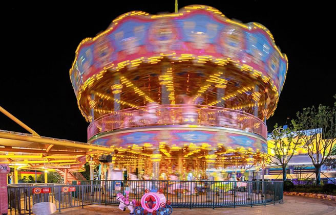 旋轉木馬是吃可愛筑成的,馬卡龍色系的木馬旋轉跳躍,無數(shù)老夫的少女心奔騰而出。雙層轉馬的豪華配置,星星點點的螢光,奶油蛋糕質感的外觀,偶像劇預定。