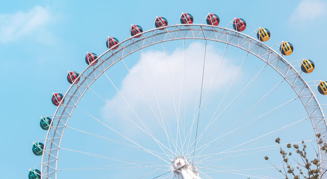摩天輪:格子間里藏著少年草莓味的心事,看城市在眼前一點點展開又收攏。棲霞山上堆滿的豪華云彩,像一幕壯麗的歌劇,足夠你在小格子里,拼卻出粉色的幻夢。