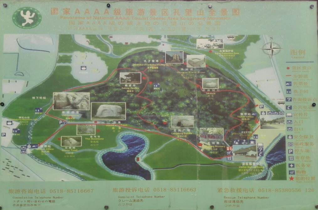 孔子起身離山去,從此留下孔望山。今天的孔望山,山之北有孔望亭,南有望海亭;東有龍洞和龍洞庵;中有象石;西麓的漢代摩崖造像石刻,尤為有名。全山風光秀美,古跡遍地,是連云港市著名的風景旅游區(qū)。
