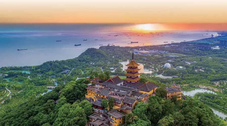 南通狼山則是由海溯江的第一座名山,被稱為江海第一山。山高106.94米。狼山是佛教西方三圣之一的大勢(shì)至菩薩的道場(chǎng),山上還供奉著惟一身披龍袍的大圣菩薩,狼山位列佛教八小名山之首。