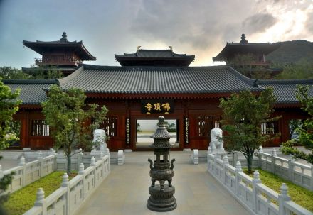 禪境大觀,南北長112米,東西寬62米,內(nèi)部凈高約41.2米,涵蓋了地上三層。整個(gè)空間面積超過6000㎡,呈橢圓形,以黃、白、灰三色為基調(diào),布置出人間山水,從而讓人們在行走之際領(lǐng)略禪意。由佛陀出生、成道的禪境花園及中間的如蓮劇場三個(gè)部分組成,展現(xiàn)了佛祖一生的行跡。