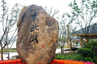 郭璞墩位于環(huán)洲西端。存石亭一座,仙墩置石一塊。是玄武湖地勢(shì)最高處。郭璞墩為東晉著名文學(xué)家、科學(xué)家郭璞的衣冠冢。郭璞景區(qū)建設(shè)以東晉時(shí)期為歷史背景,體現(xiàn)六朝風(fēng)格,沿軸線建設(shè)了郭璞雕像、不老門(mén)、等景觀,彰顯郭璞仙墩古樸隆重之氣。