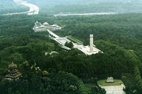 兩側(cè)的環(huán)陵大道可直達雨花臺主峰,主峰上矗立著一塊42.3米高的石碑,碑身正面鐫刻著鄧小平親筆題寫的"革命烈士紀念碑"七個金字,背面刻著紀念碑文。碑前還豎有一座高5.5米的烈士青銅塑像。在紀念碑南邊的山崗上還有一座呈"U "字型,頗具民族風格的花崗巖結(jié)構(gòu)的大型建筑--"革命烈士紀念館"。館長94米、寬49米,主堡高26米,建筑面積5900平方米,館內(nèi)陳列著烈士們的遺像、遺書和遺物等。