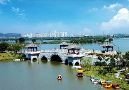 解憂橋:位于小南湖東南部,該橋?yàn)閱喂皹。一橋凌空。登橋遠(yuǎn)眺,湖山盡收。劉解憂為西漢時(shí)期徐州第二代楚王劉戊的孫女,為了和親她作為為漢家公主奉命遠(yuǎn)嫁烏孫國(guó),為國(guó)家和人民的安寧獻(xiàn)出自己的寶貴青春。