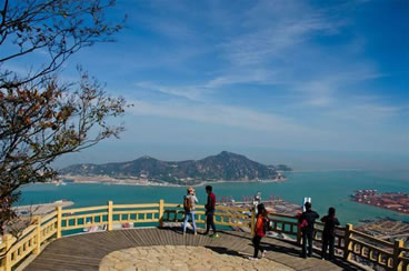 海天一覽觀景臺(tái),建于山崖頂上。依山面海,凌空壯觀,氣勢(shì)恢宏,與懸空棧道、懸索橋、云中漫步廊橋相連,總長(zhǎng)1180米,直通二桅尖山峰。游客在此,極目海州灣,一覽港島城,山海奇觀,盡收眼底,令人心曠神怡,流連忘返。有詩贊道:“山居有大觀,圖畫入眼簾。曠目千里遠(yuǎn),怡心數(shù)縷煙。島峰浮霧海,帆影接云天。海上長(zhǎng)虹落,銀鷗舞蹁躚”。