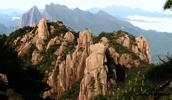 三清山:坐落于江西省東部門戶上饒市玉山縣與上饒德興市交接處。因玉京、玉虛、玉華“三峰峻拔,如三清列坐其巔”而得名。風景區(qū)總面積229平方公里,最高峰玉京峰海拔1819.9米,為懷玉山脈的主峰。懷玉山因“天帝遺玉、山神藏焉”,風光無限,別具精神而得名。三清山集天地之秀,納百川之靈,是華夏大地一朵風景奇葩。她兼具“泰山之雄偉、黃山之奇秀、華山之險峻、衡山之煙云、青城之清幽”,被國際風景名家譽之為:“世界精品、人類瑰寶、精神玉境”。她以梯云嶺、南清園、萬壽園、西海岸、玉京峰、陽光海岸、三清宮、玉零觀等十大景區(qū)引人入勝。山的東南麓水連三清湖,山光水色,溶洞奇石,美不勝收。1988年8月列為國家重點風景名勝區(qū),2008年7月列為世界自然遺產地,F(xiàn)為國家5A級風景旅游區(qū)、國家自然遺產、國家地質公園、全國愛國主義教育示范基地和全國文明風景旅游區(qū)示范點。