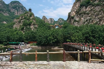 冰峪溝風景區(qū)位于莊河市北部山區(qū)仙人洞鎮(zhèn)境內,距大連市內有240公里。景區(qū)規(guī)劃面積約有110平方公里,景區(qū)面積約47平方公里。龍華、攔馬、莢蓉三山屏蔽,英納、小峪兩河盤繞。這里林木參天,山清水秀,宛如江南風景,素有“遼南小桂林”之美稱。冰峪溝的風景既不同于桂林山水,又不同于黃山云海,以其獨特的風格和韻味呈現(xiàn) 在東北遼南的一隅。