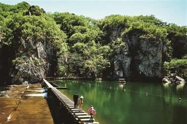 是冰峪石林地貌比較集中的地方,這里孤峰突兀,頗有點小桂林的味道。有人稱其為“天然大盆景園”,因為景區(qū)內有大象吸水、金雕、豬馱龜?shù)仍S多奇景。