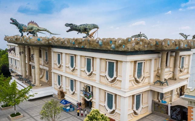 該項目充分利用了現場實景、立體電影、現場特技、動感平臺等技術,綜合了巨幕、環(huán)幕 4D 電影、多自由度動感游覽車、現場特技等多項高科技游樂技術。講述了在地球已經進入高度發(fā)達的年代,地球上某城市博物館中保存的恐龍蛋經過放射物質照射以后,已經變成化石的恐龍復活,破殼而出,逃離博物館。經過放射物質照射后的恐龍以驚人的速度成長、繁殖在城市的各個角落……游客乘坐游覽車在一個恐龍橫行、一片混亂的城市中穿行,經歷一場恐龍破壞、毀滅城市的浩劫,體驗驚險刺激的生死之旅。