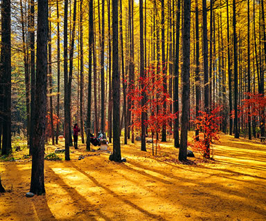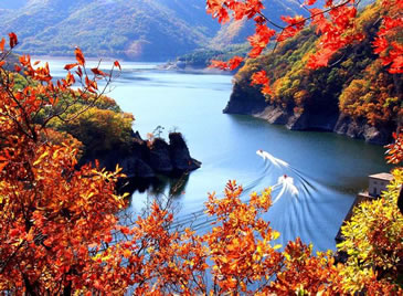 月臺子景區(qū)是主要的楓葉觀賞區(qū),每年本溪都開楓葉節(jié)。楓葉節(jié)是本溪走向全國、走向世界的橋梁,是本溪旅游事業(yè)蒸蒸日上的窗口。而關(guān)門山紅葉更是倍受贊譽(yù),每逢秋季,萬山紅遍層林盡染,紅紅火火的楓葉也會讓您的思緒隨之蕩漾,讓您不由得想起這樣一首詩:蕭蕭淺絳霞初碎,槭槭深紅雨復(fù)燃,染得千秋林一色,還家只當(dāng)是春天。伴隨著詩的優(yōu)美,我們到了月亮灣。2000年7月,我國著名的歌唱家彭麗媛曾經(jīng)到此拍攝音樂電視《世紀(jì)春雨》,這首歌曾在MTV大賽中榮獲金獎,大家隨著看到的就是森林浴場,您可以漫步林中,在石桌上小憩,在秋千上放歌,尋找兒時的樂趣。
