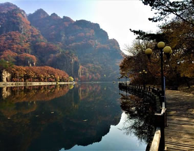 這里的主要景點(diǎn)有碧波蕩漾的五彩湖、陡峭秀麗的寶塔峰,栩栩如生的雄獅鎮(zhèn)岳等等。五彩湖,它是98年修建的一個人工湖,平均水深3.6米,最深處可達(dá)7.5米,為什么叫五彩湖呢?每到秋季,黃的柞樹、綠的青松、紅的楓樹,它們的倒影映襯在水里邊,呈現(xiàn)出五彩繽紛的顏色,故比得名五彩湖。
