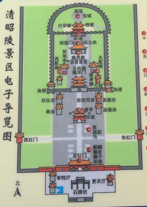 清昭陵,是在平地上建立的,主要建筑位于中軸線上,其它建筑對(duì)稱(chēng)分布于中軸線兩側(cè)。昭陵由三部分組成。